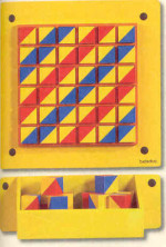 In einer Art Setzkasten lassen sich 36 farbige Würfel einlegen. Je nachdem